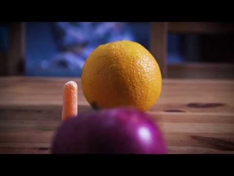 A showdown between an apple and an orange over the life of a precious baby carrot.